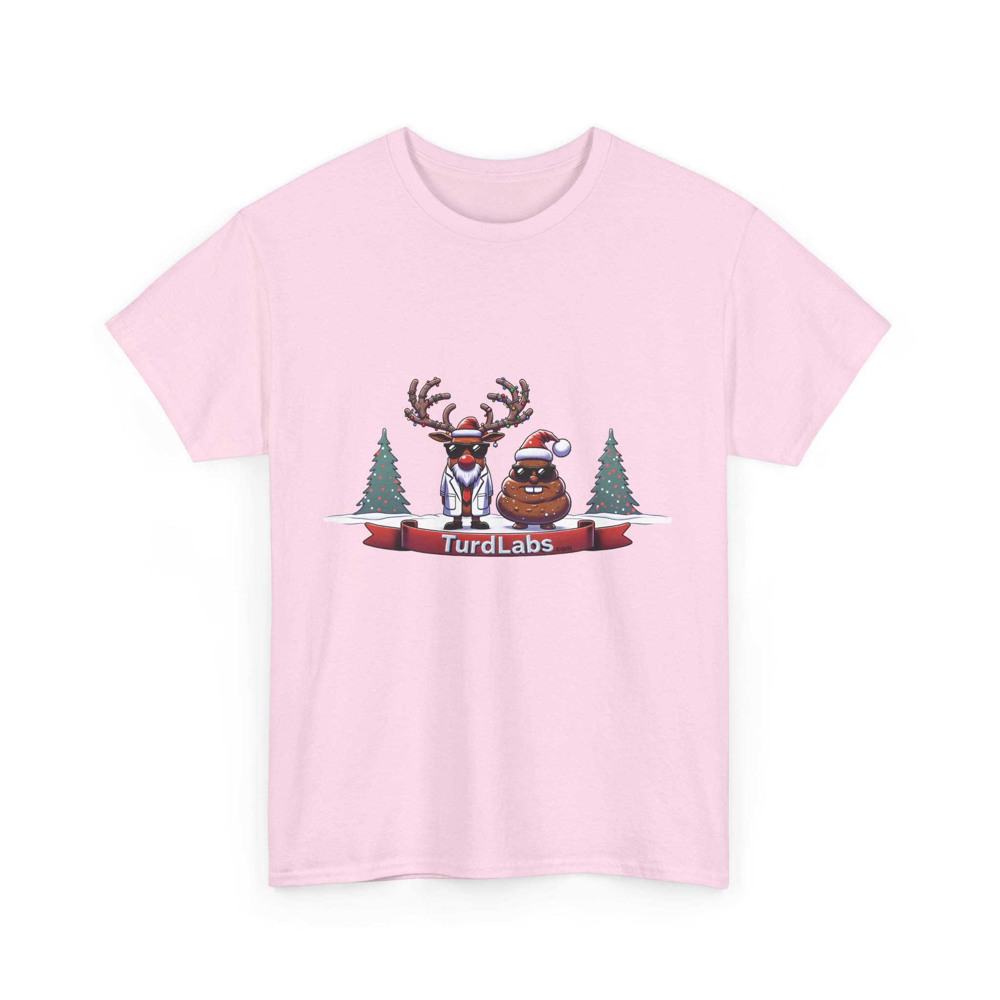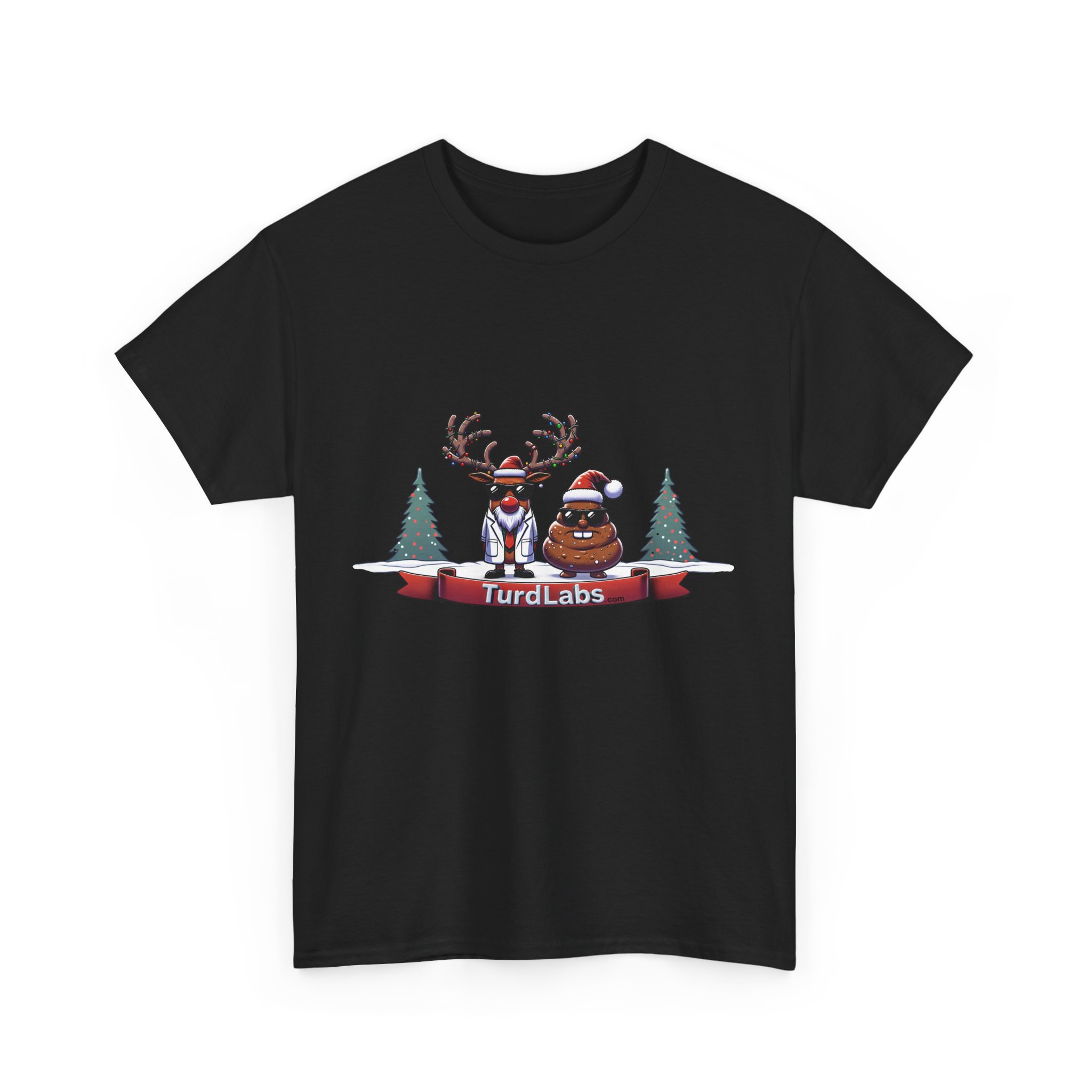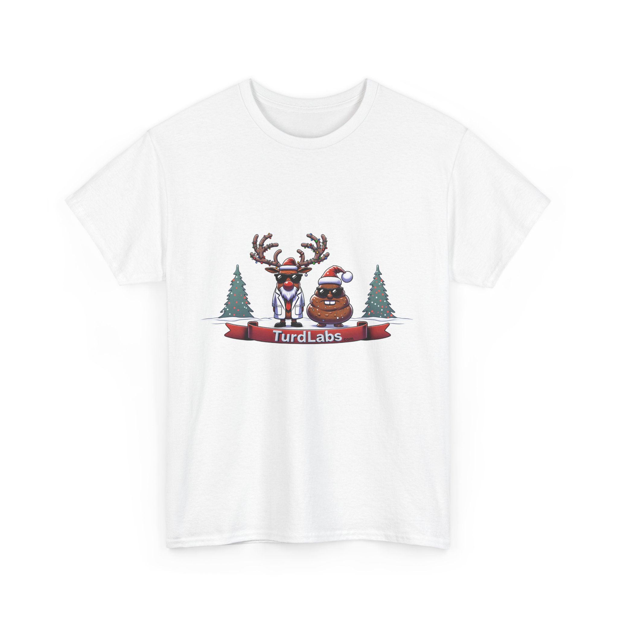 In the frosty North Pole, science and holiday humor collide! Meet the coolest Christmas duo around—a reindeer scientist in a crisp lab coat and sunglasses, accompanied by a mischievous poop character rocking a Santa hat and shades. Together, they bring a whole new meaning to holiday cheer, standing proudly amidst a snowy wonderland decorated with twinkling Christmas trees. The reindeer’s studious demeanor and the poop’s playful grin make this design a hilarious contrast that’s perfect for anyone who loves quirky humor. Whether you’re making a splash at a holiday party or gifting it to someone with a great sense of humor, this shirt is a surefire way to stand out and spread laughs.