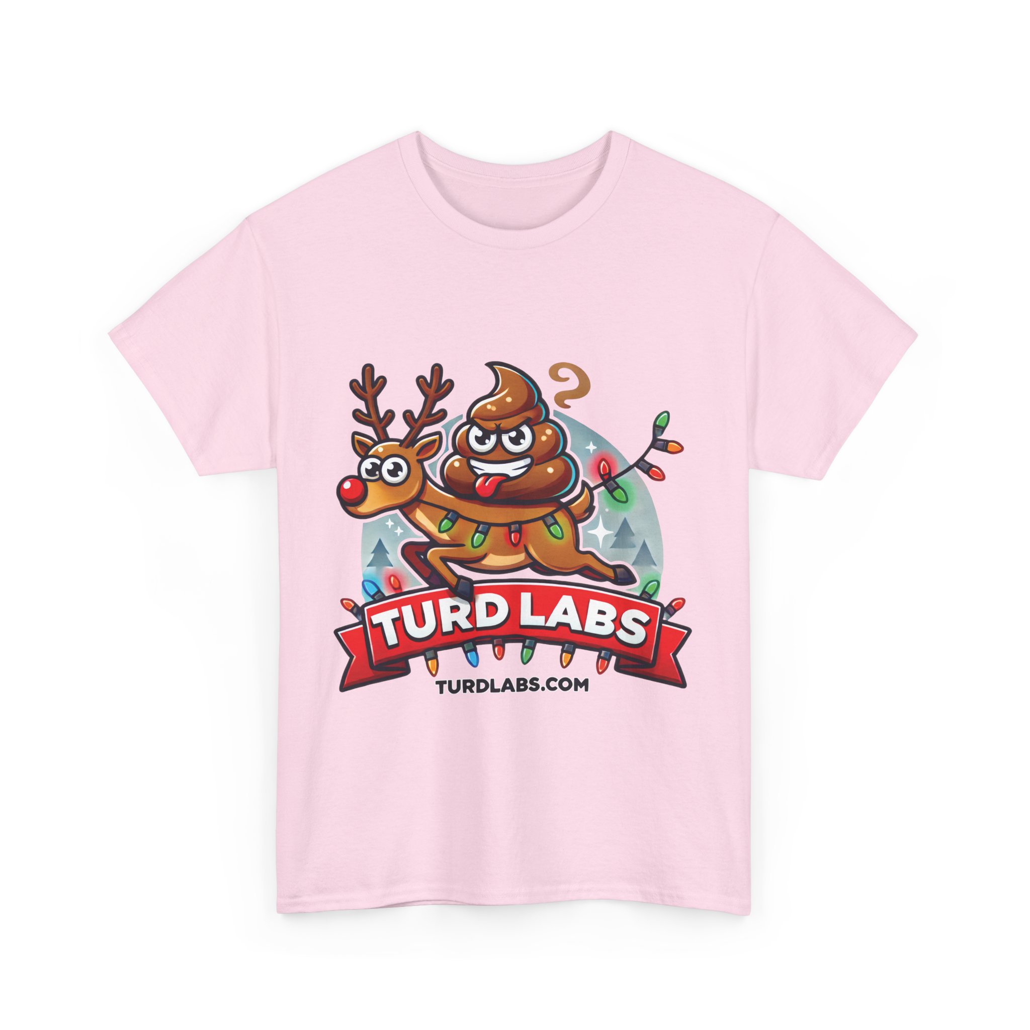 Hold onto your sleigh bells—this Christmas is about to get hilariously wild! Meet the mischievous turd that couldn’t resist a holiday joyride on a reindeer. Tongue out, eyes wide with excitement, and wrapped in a string of colorful Christmas lights, this prankster has turned holiday traditions upside down. The reindeer, though slightly frazzled, is along for the ride in this festive and chaotic adventure. With a bold “TURD LABS” banner and subtle holiday accents like evergreen trees and whimsical motion details, this design is guaranteed to turn heads and spark laughter wherever you go. Perfect for holiday parties, gag gifts, or anyone who appreciates absurd humor with a festive twist, this shirt is your ticket to stand out during the most wonderful time of the year.
