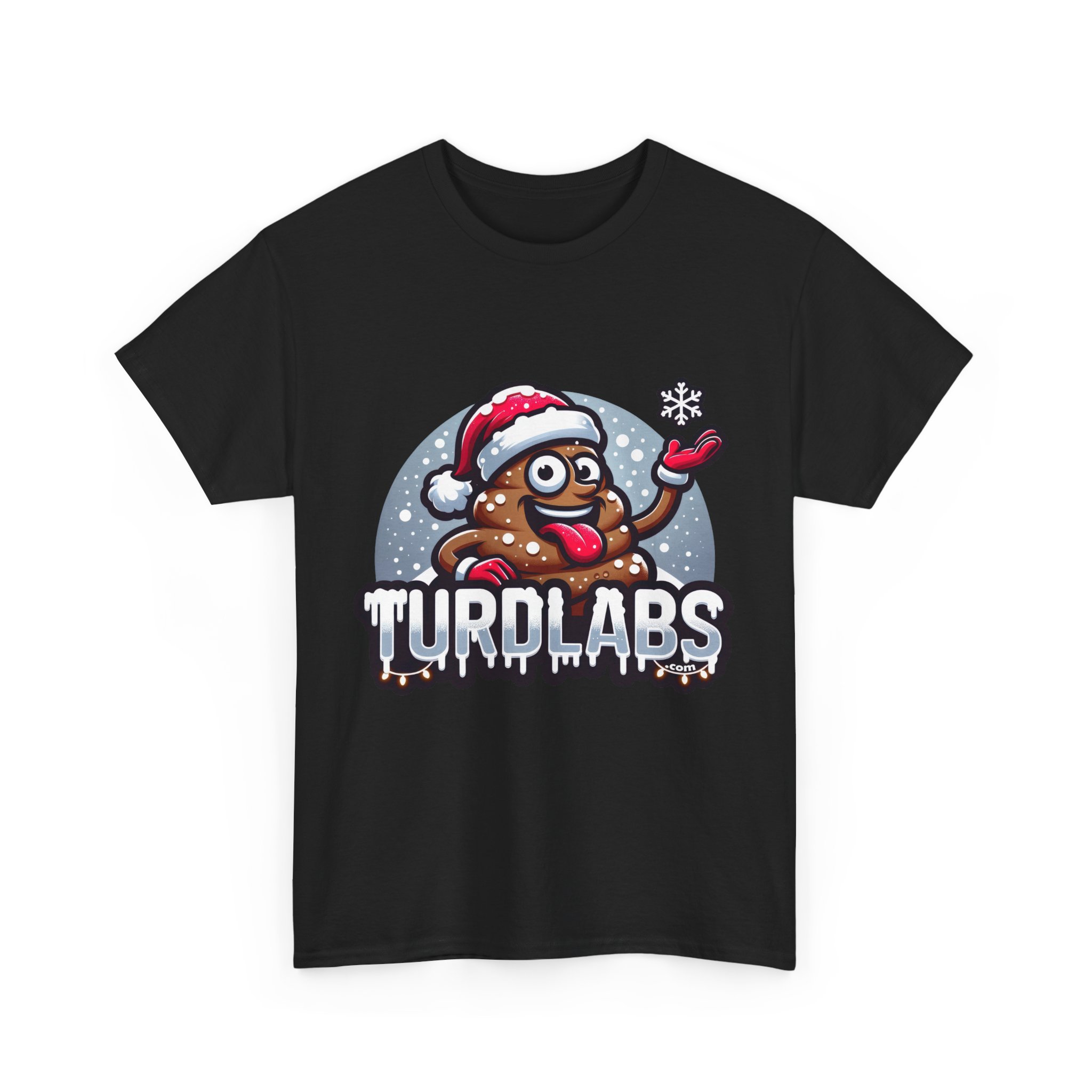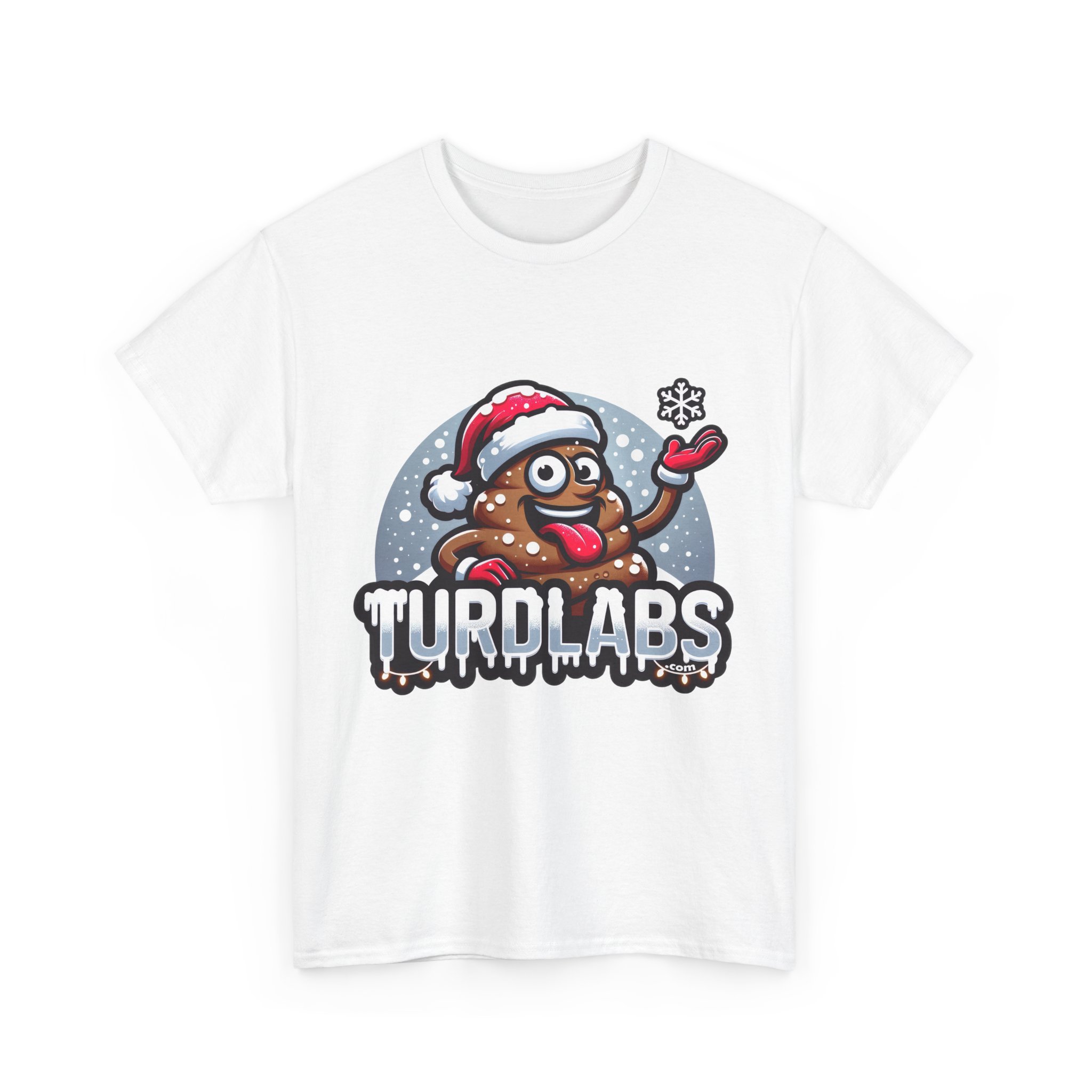Winter just got a lot more hilarious! This festive design features a cheerful poop character rocking a Santa hat, sticking out its tongue as it playfully catches a snowflake. Surrounded by a flurry of snow and twinkling holiday lights, this quirky character is full of mischief and holiday spirit. Below, the bold “TURDLABS” logo drips with frosty icicles, adding a chilly, whimsical touch to the scene. Whether you’re braving a holiday party, giving the ultimate gag gift, or just embracing your love of absurd humor, this design captures the magic of winter with a fun and irreverent twist. It’s a guaranteed crowd-pleaser for anyone who loves to celebrate the season with a hearty laugh!